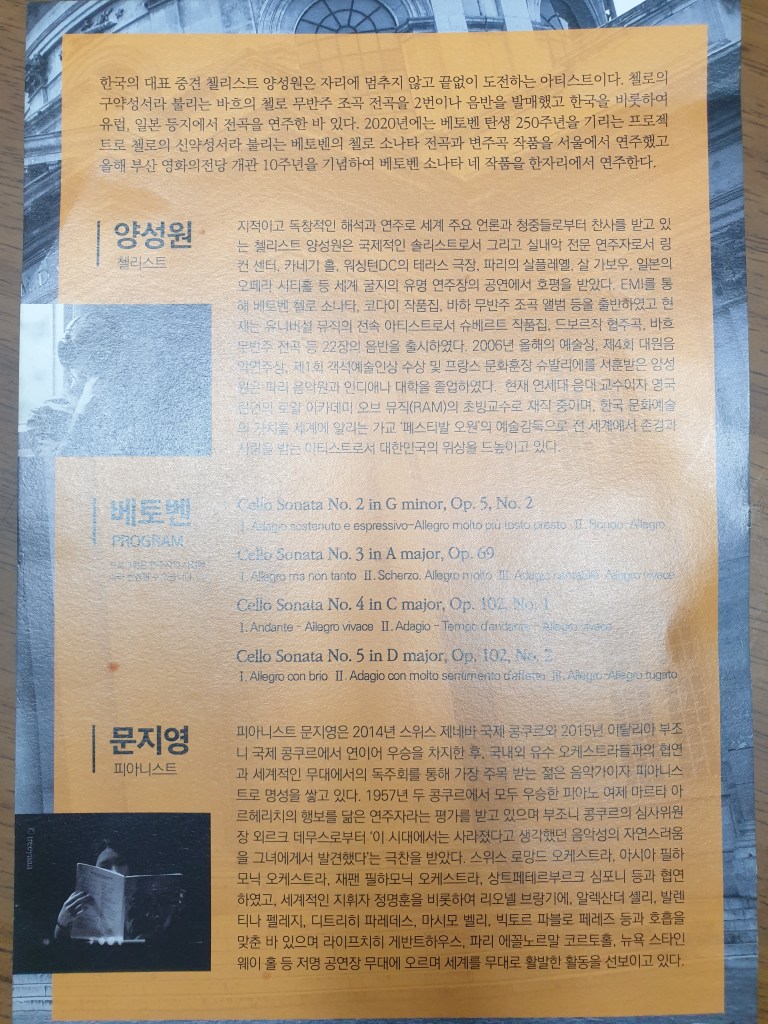 남긴 메모 : Beethoven Cello Sonata no.2, no.3, no.4 로 변경됨. 인스타 리뷰 참조